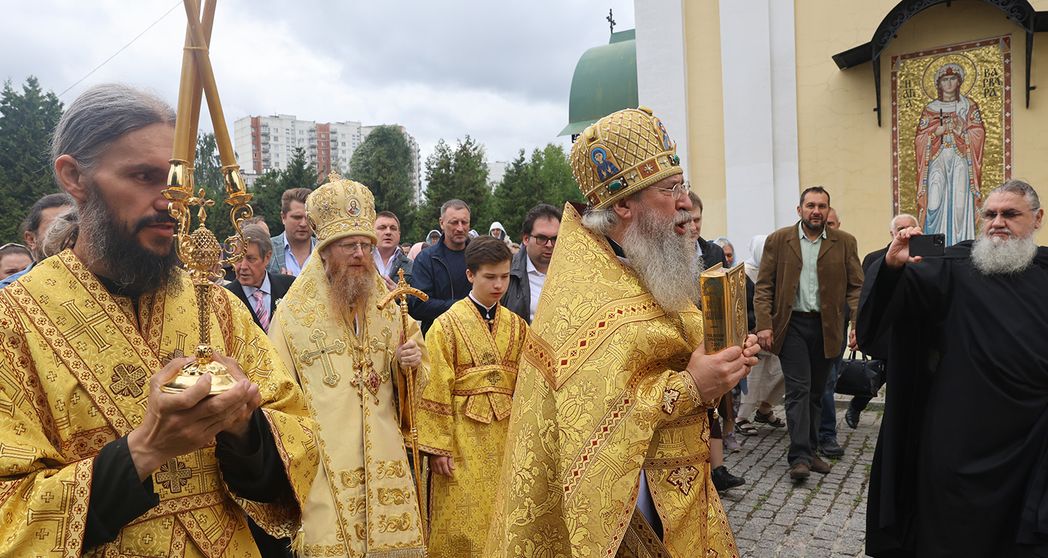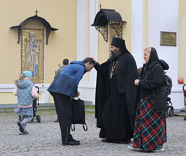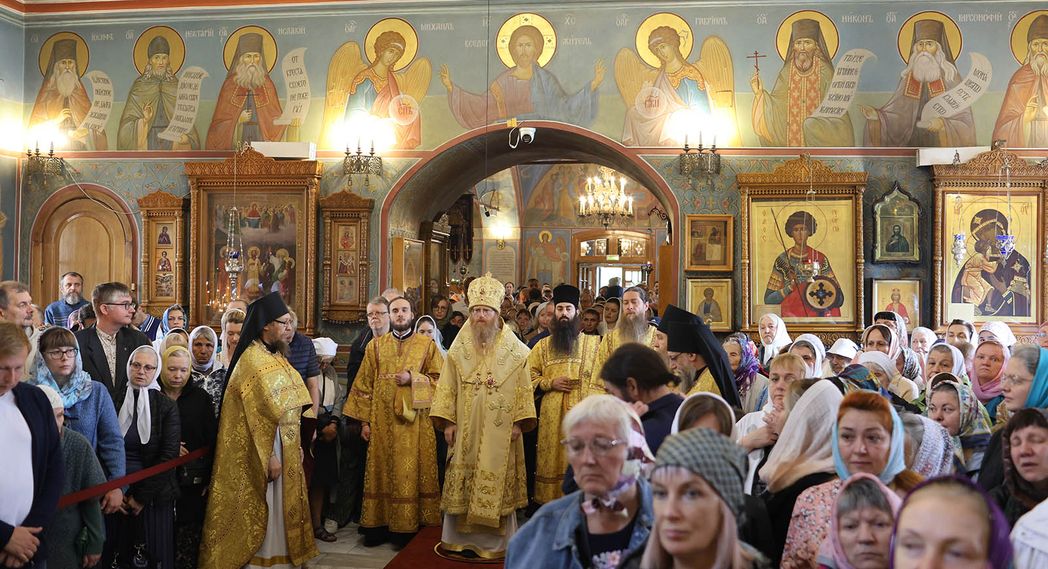 Его Преосвященству сослужили пресс-секретарь Синодального отдела по монастырям и монашеству, настоятель Оптинского подворья архимандрит Мелхиседек (Артюхин), братия монастыря в священном сане и духовенство Петропавловского храма.