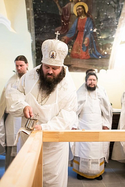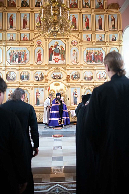 После освящения храма состоялась Литургия, на которой епископу Парамону сослужили настоятель Гефсиманского скита архимандрит Дамиан и братия обители. По окончании богослужения владыка наместник поздравил молящихся с освящением нового храма и обратился к ним с архипастырским словом: