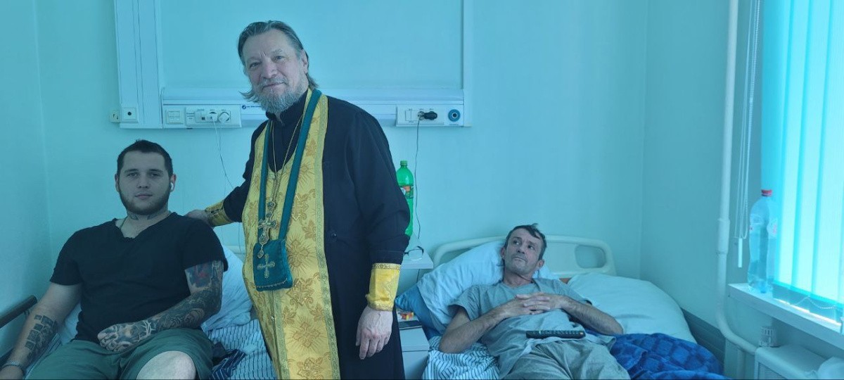 Игумен Никита навестил раненных воинов, совершил над желающими таинство Соборования и приобщил раненных защитников Отечества Святых Христовых Таин.