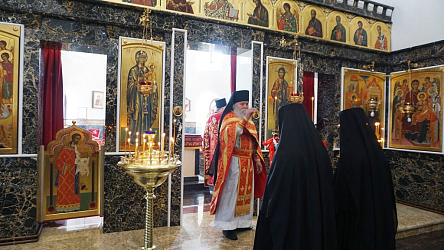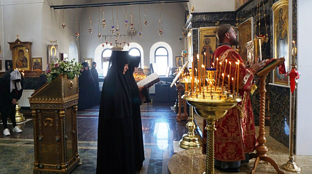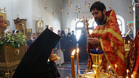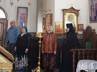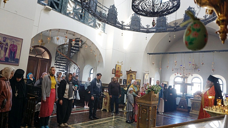 После Литургии священнослужители поздравили всех женщин с праздником жен-мироносиц, иерей Владимир Зыков произнес проповедь о празднуемом событии, хор спел многолетие игумении Неонилле с сестрами.
