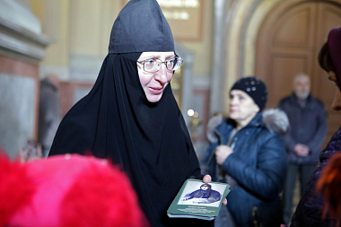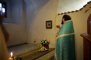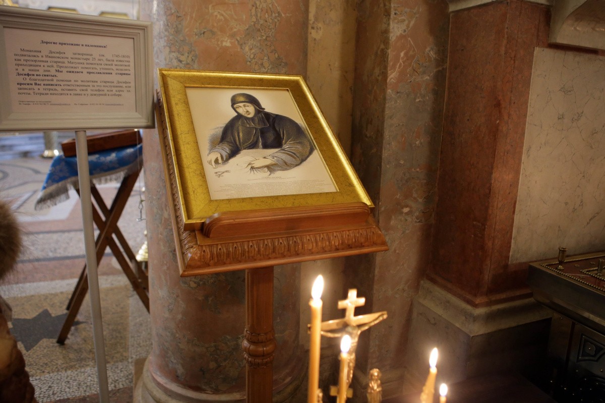 В храме-усыпальнице прп. Романа Сладкопевца у гробницы монахини Досифеи отец Николай Мальцев отслужил панихиду, произнес слово о почитаемой старице, а в завершение подарил молящимся открытки с ее портретом.