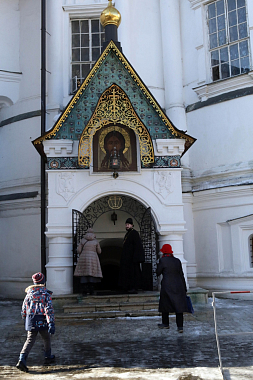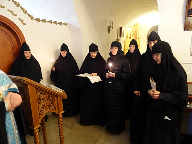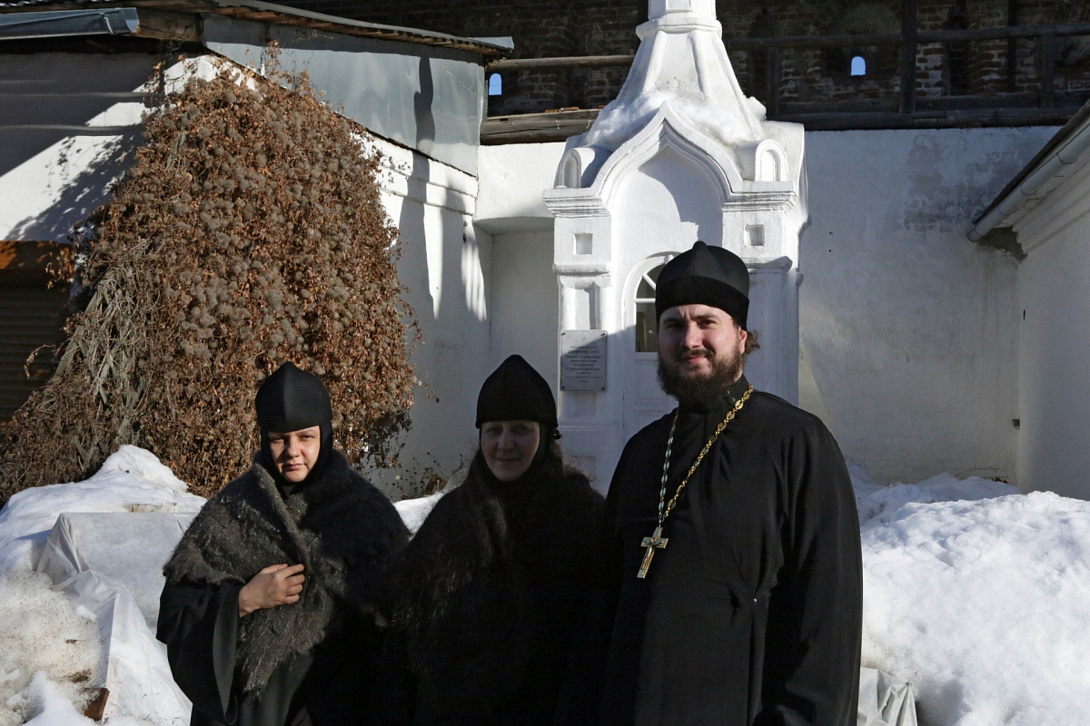 После трапезы, за которой чередная сестра читала жизнеописание старицы Досифеи, составленное протоиереем Василием Рудневым, несколько сестер и экскурсоводы из Досифеевской группы поехали в Новоспасский ставропигиальный мужской монастырь почтить память Ивановской затворницы.