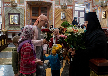 Чествование именинницы продолжилось в трапезной монастыря: для матушки Елисаветы и гостей праздника было подготовлено музыкальное приношение в исполнении сестер обители и воспитанников монастырского приюта «Ковчег».