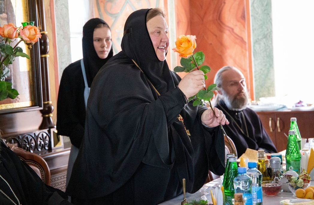 Чествование именинницы продолжилось в трапезной монастыря: для матушки Елисаветы и гостей праздника было подготовлено музыкальное приношение в исполнении сестер, детей из приюта «Ковчег», а также музыкально-хорового ансамбля юных прихожан и паломников Махрищской обители.