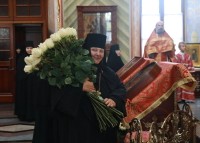 Божественная литургия в Троицком храме была совершена соборно клириками обители и гостями монастыря в священном сане. По окончании Литургии иерей Михаил Овсянников зачитал поздравление с днем тезоименитства от Святейшего Патриарха Кирилла и поздравил матушку Елисавету от имени монастырского духовенства. Завершилось богослужение молебном святой прмчц. Елисавете и прп. Сергию и торжественным крестным ходом.