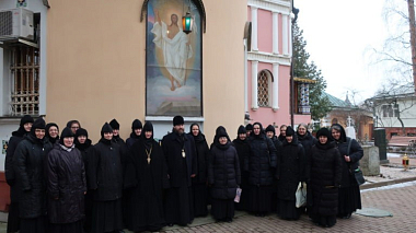 Поклонившись почившим матушкам, сестры вслед за владыкой и игумениями прошли в старинный храм Преображения Господня, находящийся в настоящее время на полной реставрации. Матушка Ксения поделилась воспоминаниями о схимонахине Александре, по монастырскому преданию перед кончиной пожертвовавшей старинную икону Божией Матери в Филипповский храм (второе название храма Преображения Господня по приделу во имя свт. Московского Филиппа).