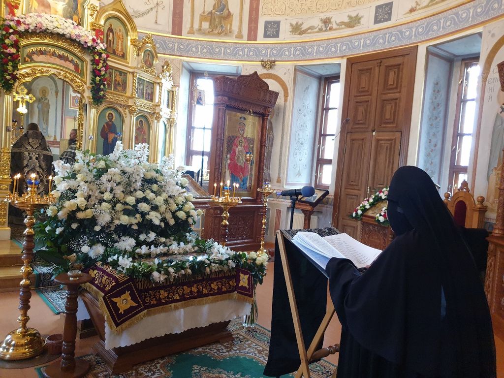 От лица духовенства настоятельницу поздравил старший священник обители иеромонах Адриан (Чаликов), преподнеся матушке Марии в знак особого молитвенного предстояния и благодарности богослужебную именную просфору, сказав также слова духовного утешения и воодушевления, пожелав Божественного укрепления и помощи Божией в несении нелегкого игуменского креста, который матушка игумения достойно, ревностно и с любовию к ближним несет уже многие годы.