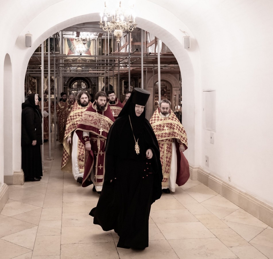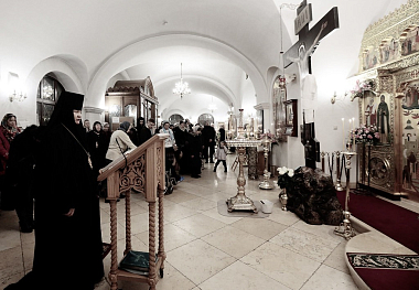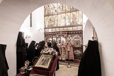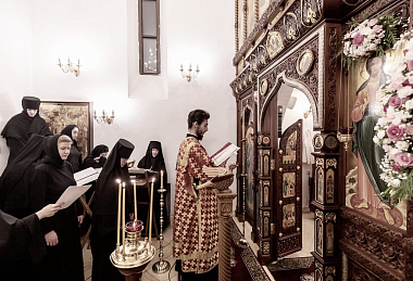 Накануне в приделе преподобных Иулиании и Евпраксии Московских монастырского собора состоялось торжественное всенощное бдение с пением акафиста.