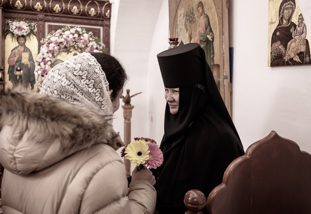 По окончании Литургии духовенство, сестры и прихожане Зачатьевского монастыря поздравили матушку игумению с днем тезоименитства.