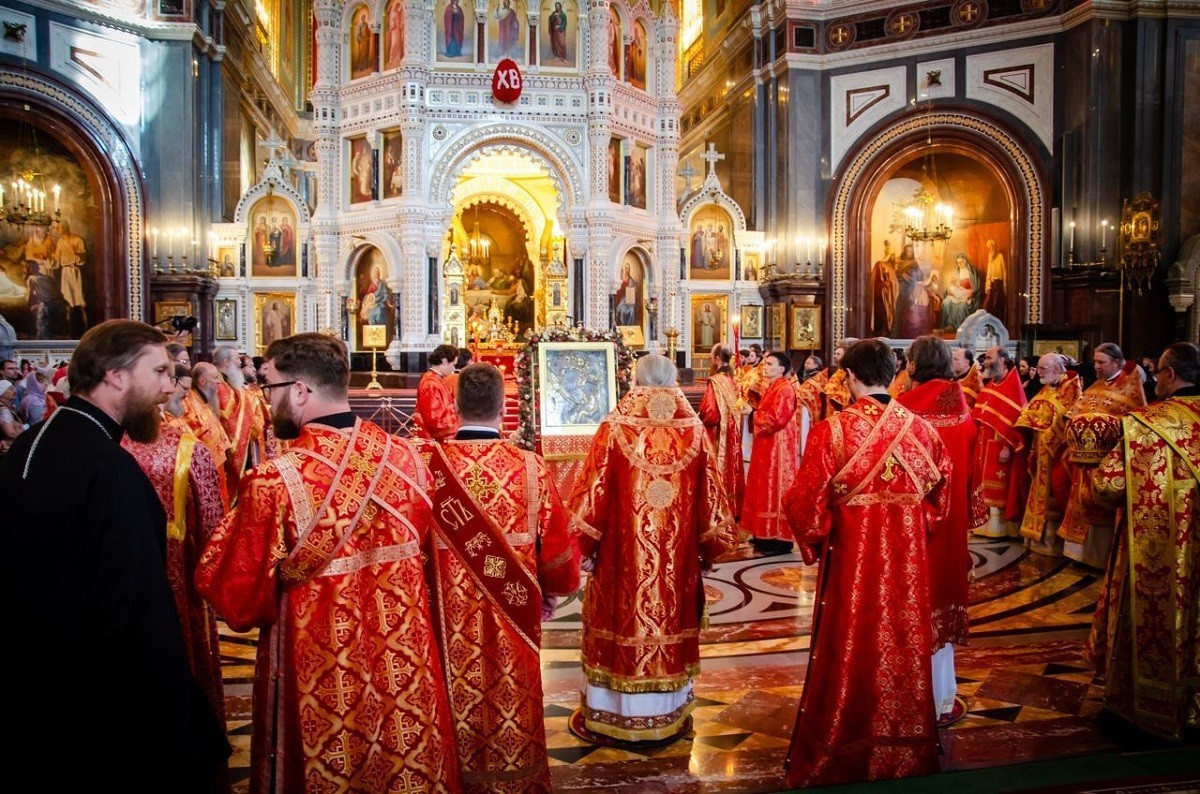 Божественную литургию в этот день в Храме Христа Спасителя совершил управляющий делами Московской Патриархии, первый викарий Святейшего Патриарха по Москве митрополит Воскресенский Григорий. Его Высокопреосвященству сослужили епископ Тихвинский и Лодейнопольский Мстислав, столичное духовенство, в том числе из Центрального благочиния и из женских монастырей Москвы.