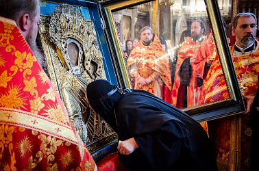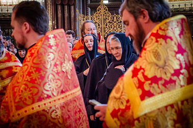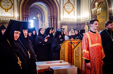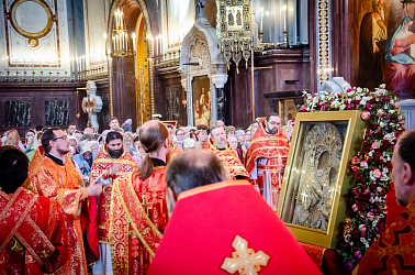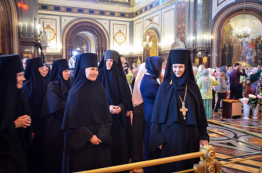 Игумения Иулиания (Каледа) с сестрами и духовенством прибыли в Храм Христа Спасителя и приложились к образу Царицы Небесной.