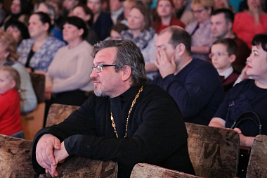 С приветственным словом к залу обратился иеромонах Варлаам, насельник Угрешской обители. Отец Варлаам поздравил гостей праздника с переживаемыми ныне удивительными днями, наполненными радостью о воскресшем Христе, пожелав, чтобы этот вечер помог взрослым почувствовать себя немного детьми и, отложив в сторону свои серьезные роли, вспомнить, как прекрасен окружающий мир. «Будьте как дети», –напоминают нам об этом и евангельские строки.