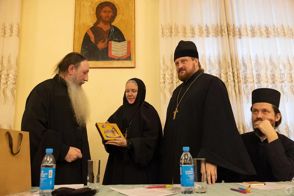 Игумения Маргарита и руководитель паломнического отдела Паломнического центра Московской Патриархии Я.В. Гальченко рассказали участникам совещания о подготовке к празднованию 500-летнего юбилея Новодевичьей обители и об итогах экспедиционной поездки по маршруту северного пути, состоявшейся в августе нынешнего года.
