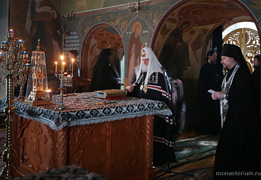 14 марта 2019 года, в четверг первой седмицы Великого поста, Святейший Патриарх Московский и всея Руси Кирилл молился за уставным богослужением в Заиконоспасском ставропигиальном мужском монастыре Москвы.