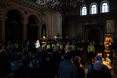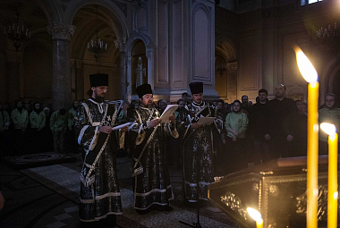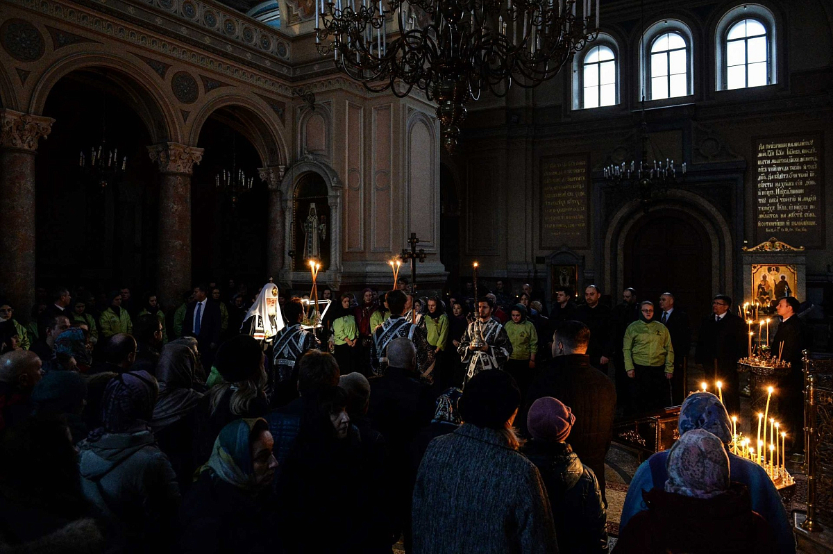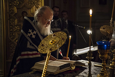 В соборном храме Предстоятель Русской Православной Церкви принял участие в вечернем богослужении в канун Великого Вторника. На великом повечерии Святейший Патриарх Кирилл читал канон Триоди, а на утрене – Евангелие.
