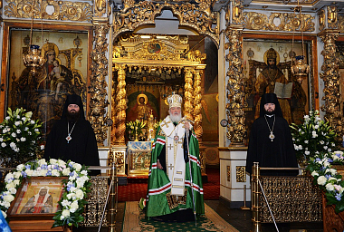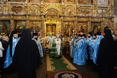 Его Святейшеству сослужили: епископ Богородский Антоний, руководитель Управления Московской Патриархии по зарубежным учреждениям; епископ Бронницкий Парамон, наместник Донского монастыря; протоиерей Владимир Диваков, секретарь Патриарха Московского и всея Руси по г. Москве; игумен Григорий (Качалов), благочинный Донского монастыря; насельники обители в священном сане.