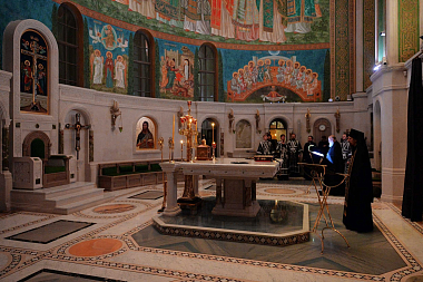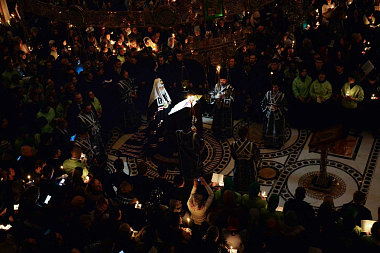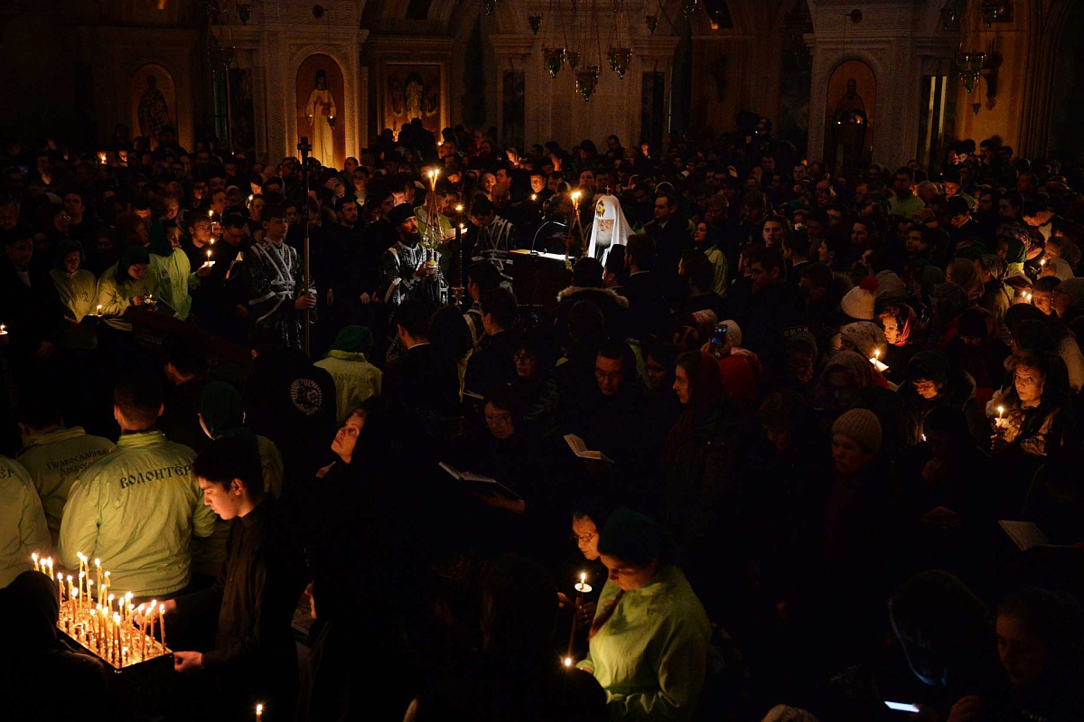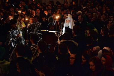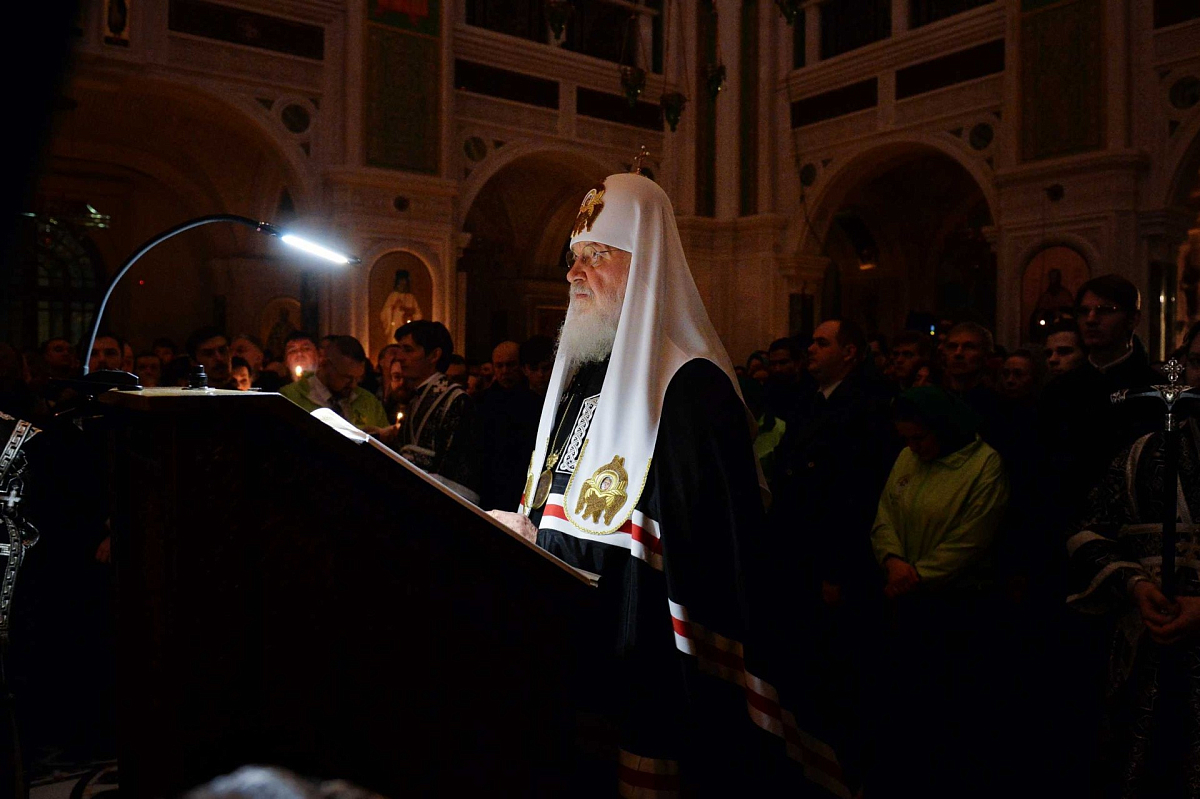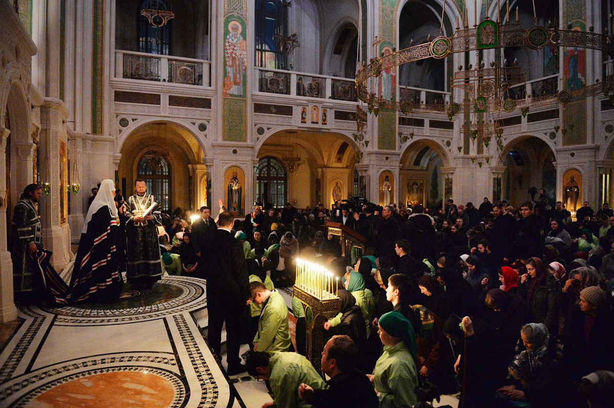 В храме Воскресения Христова и Новомучеников и исповедников Церкви Русской Предстоятель Русской Православной Церкви совершил великое повечерие с чтением Великого покаянного канона прп. Андрея Критского.