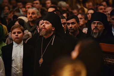 За богослужением молились председатель Патриаршего совета по культуре, наместник Сретенского монастыря епископ Егорьевский Тихон, братия обители, многочисленные прихожане и паломники.