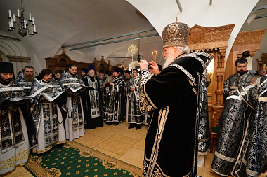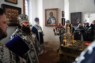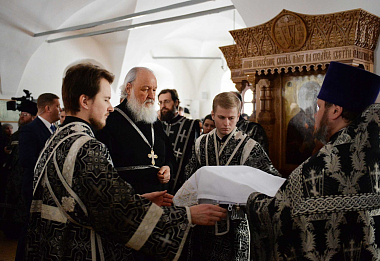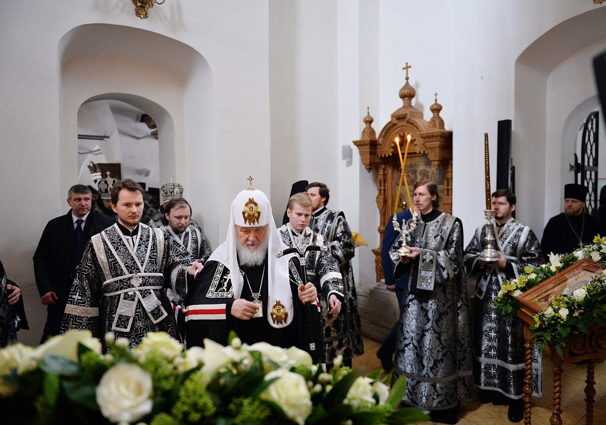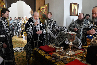2 апреля 2018 года, в понедельник Страстной седмицы, Святейший Патриарх Московский и всея Руси Кирилл совершил Литургию Преждеосвященных Даров в Малом соборе Донского ставропигиального мужского монастыря Москвы.