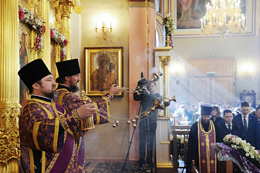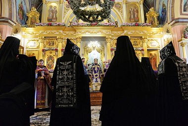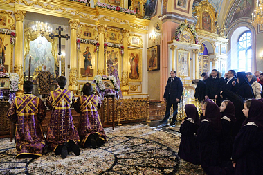В храме молились настоятельница Покровского монастыря игумения Феофания (Мискина), насельницы обители, воспитанницы монастырского приюта для девочек, благотворители.