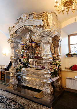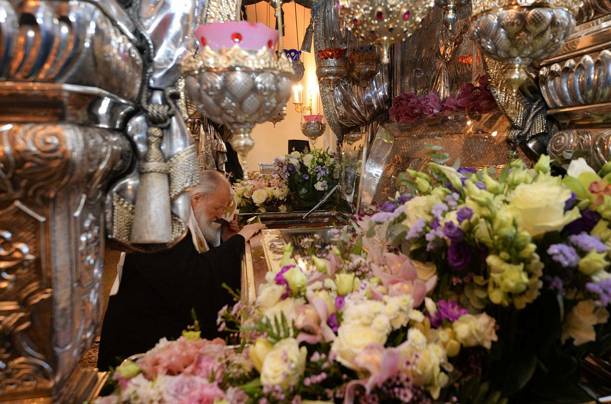 В завершение Святейший Владыка совершил славление и молитву у мощей святой Матроны в Покровском храме.