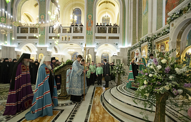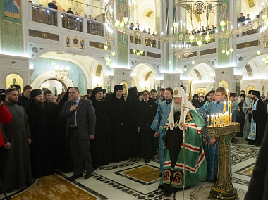 Затем Предстоятель Русской Православной Церкви обратился к участникам богослужения с Первосвятительским словом.