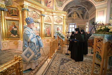 Его Высокопреосвященству сослужили благочинный Покровского округа Центрального викариатства города Москвы протоиерей Олег Егоров и клирики монастыря.