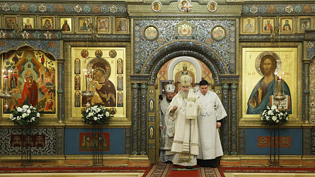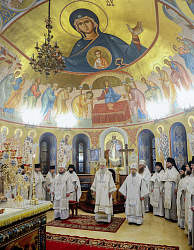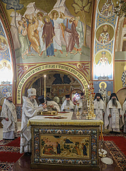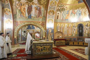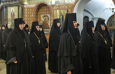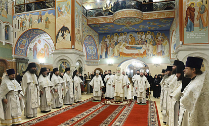 За Литургией молились участники заседания монашеского направления XXXII Международных Рождественских образовательных чтений ‒ игумены и игумении, насельники монастырей.