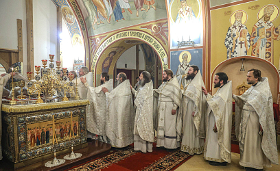 Проповедь произнес наместник Андреевского ставропигиального мужского монастыря игумен Дионисий (Шлёнов).