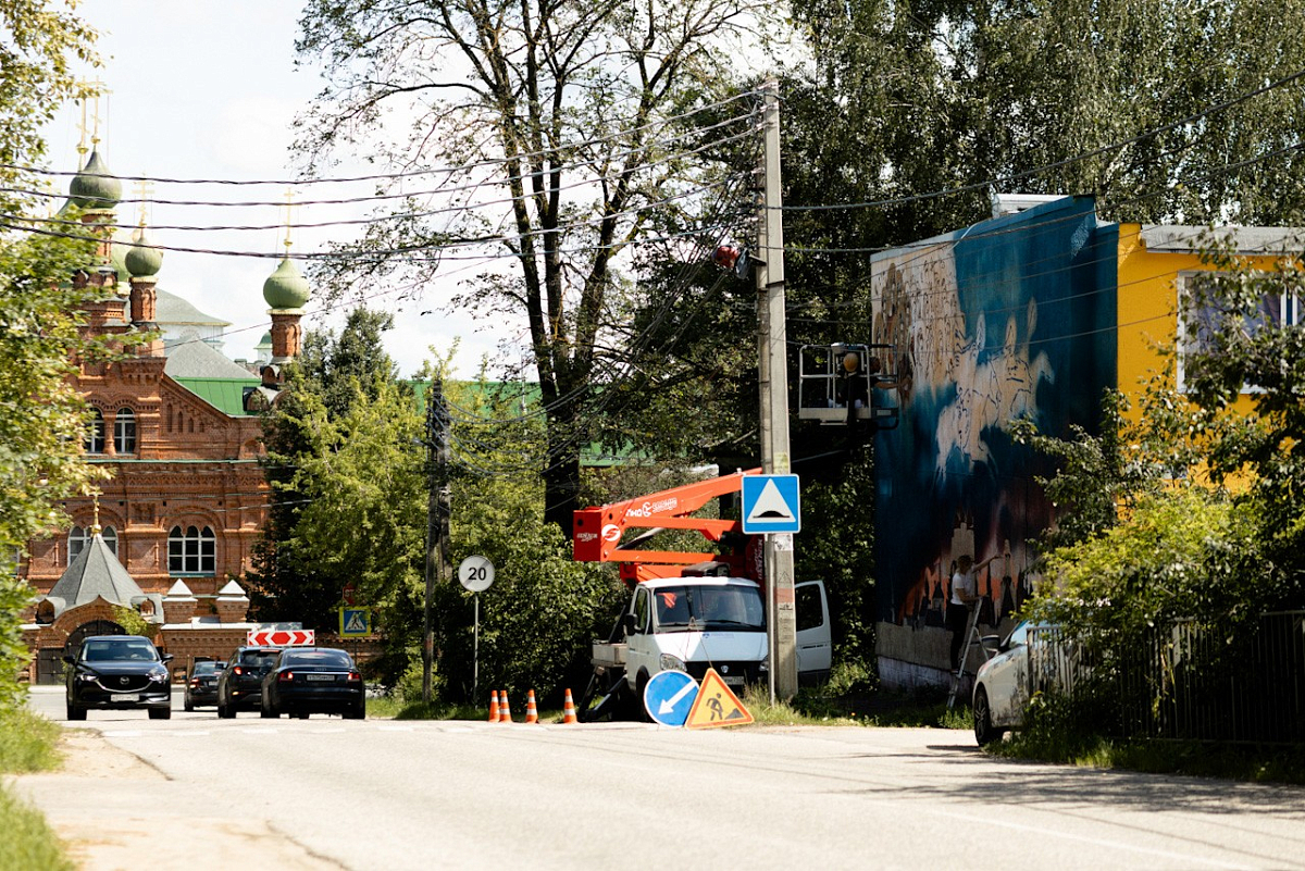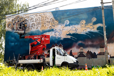 По инициативе Свято-Троицкой Сергиевой лавры на фасаде одного из домов Сергиева Посада появился новый мурал. Арт-объект находится по адресу: г. Сергиев Посад, улица Кирова, дом 5, а его размер составляет 84 кв.м.