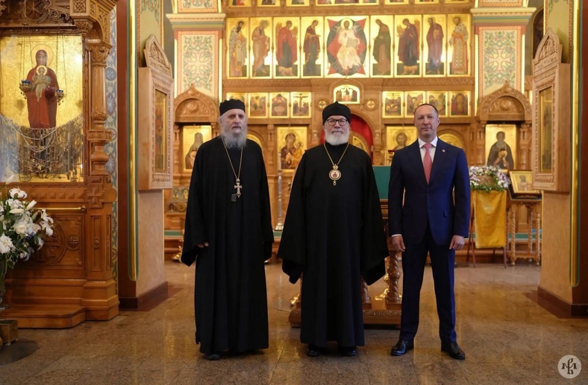 По приглашению владыки на подворье прибыли президент корпорации Вадим Лобов, проректор по просвещению университета «Синергия» Оксана Медведева и другие сотрудники организации. Для гостей была организована краткая экскурсия с рассказом об истории Московского подворья, храмах и святынях.