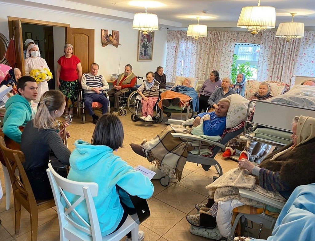6 февраля 2022 года подростки клуба «Пилигримия» Патриаршего центра духовного развития детей и молодёжи при Даниловом ставропигиальном мужском монастыре г. Москвы посетили с музыкальной программой и подарками одиноких пожилых людей в Свято-Спиридоньевской богадельне, благотворительного проекта православной службы помощи «Милосердие».