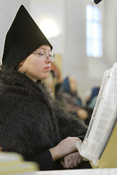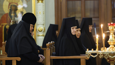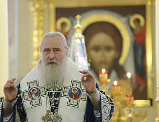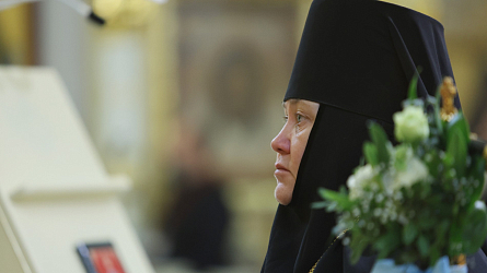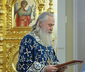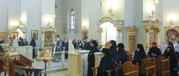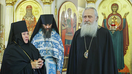 По окончании молебна владыка Феогност поздравил игумению Екатерину с престольным праздником и произнес проповедь.