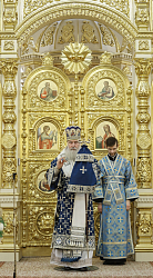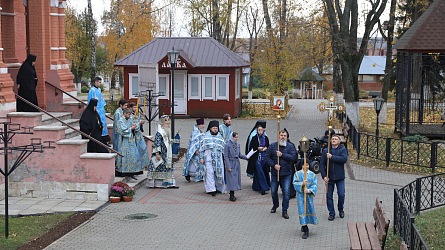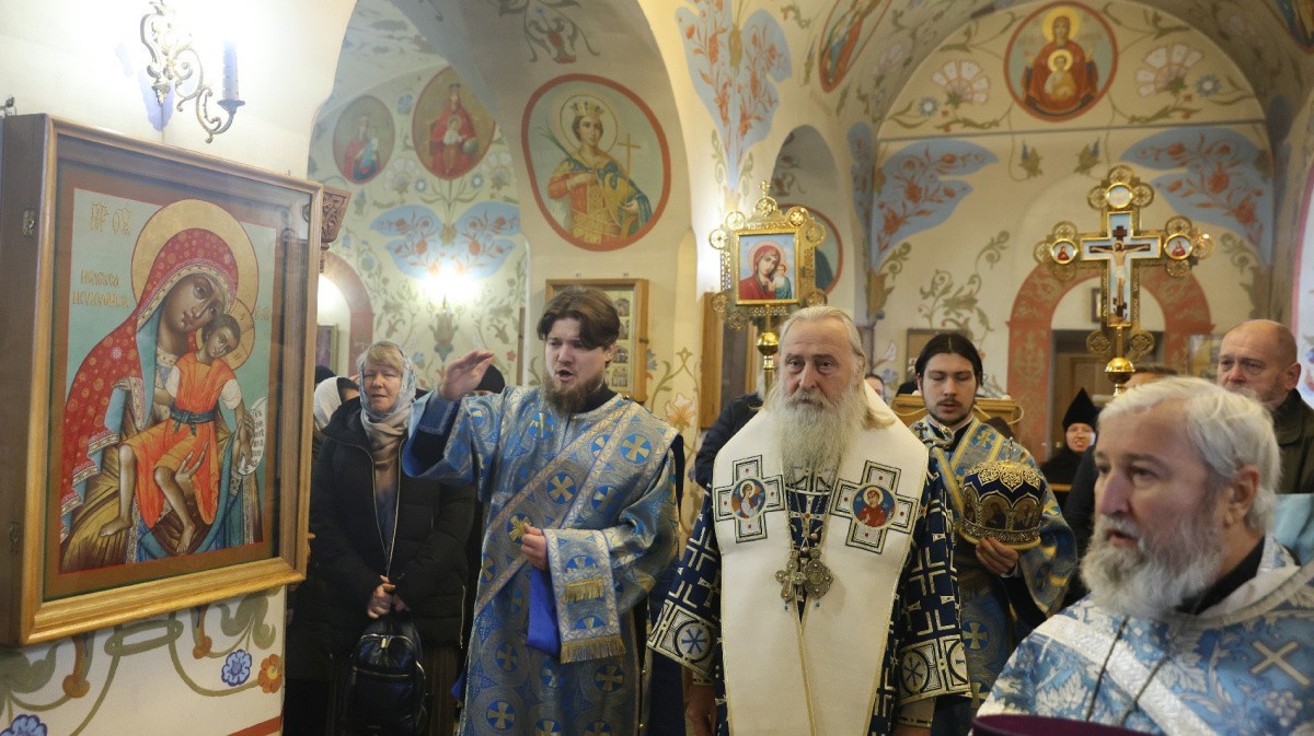По окончании Литургии был совершен крестный ход в монастырский Иерусалимский храм, где митрополит Феогност отслужил молебен перед чтимой иконой Божией Матери Иерусалимской.