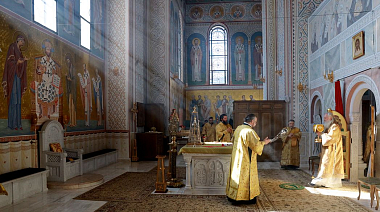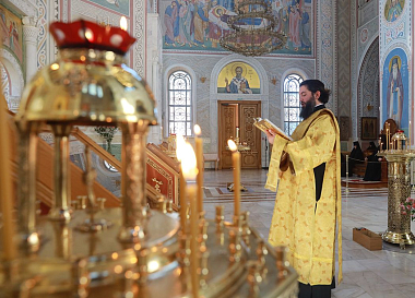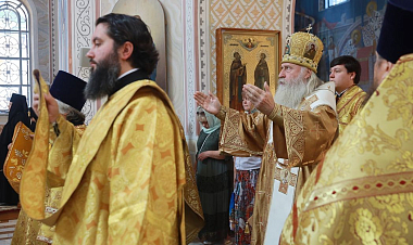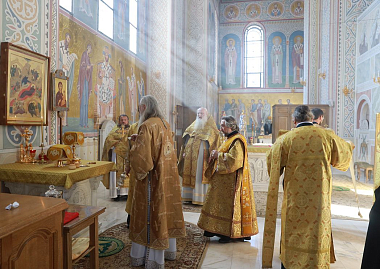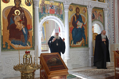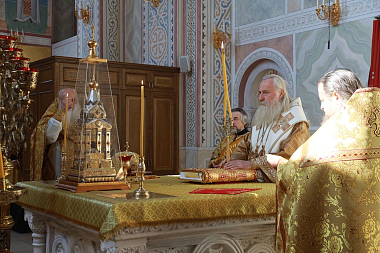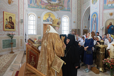 Его Высокопреосвященству сослужили клирики обители.
