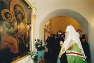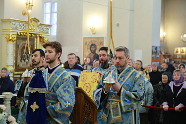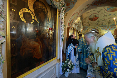 По окончании богослужения богомольцы крестным ходом прошли в Иерусалимский храм, где находится святыня – Иерусалимская икона Божией Матери, перед которой было совершено славление.