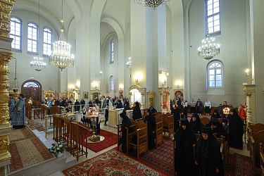 25 октября 2025 года, в праздник Иерусалимской иконы Божией Матери, председатель Синодального отдела по монастырям и монашеству, наместник Донского ставропигиального мужского монастыря митрополит Каширский Феогност совершил Божественную литургию в Вознесенском соборе Крестовоздвиженского Иерусалимского ставропигиального женского монастыря.