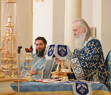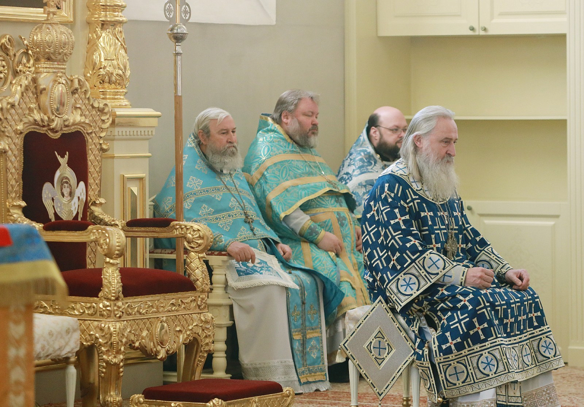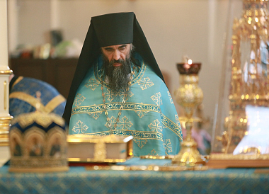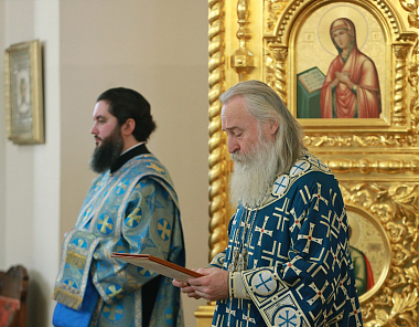 Его Высокопреосвященству сослужили клирики монастыря.