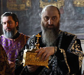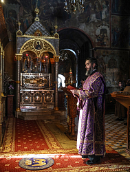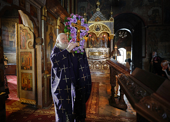 На Изобразительных было пропето славление Кресту Господню, и Высокопреосвященный владыка, благословив молящихся, занес Святой Крест в алтарь.