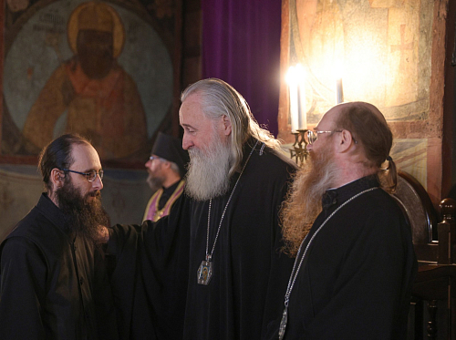Его Высокопреосвященству сослужили наместник Введенского ставропигиального мужского монастыря Оптина пустынь епископ Можайский Иосиф, епископ Ардатовский и Атяшевский Мелетий, пресс-секретарь Синодального отдела по монастырям и монашеству, настоятель московского подворья Оптиной пустыни архимандрит Мелхиседек (Артюхин), наместник Сретенского ставропигиального мужского монастыря игумен Иоанн (Лудищев), наместник Андреевского ставропигиального мужского монастыря игумен Дионисий (Шленов), наместник Иоанно-Богословского мужского монастыря в селе Пощупово Рязанской области игумен Исаакий (Иванов), члены коллегии Синодального отдела по монастырям и монашеству, братия обители в священном сане.