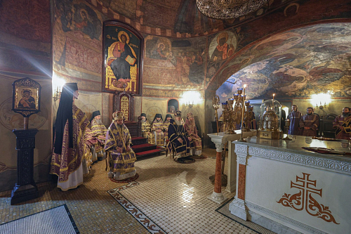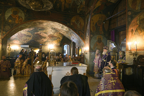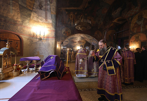 9 апреля 2025 года председатель Синодального отдела по монастырям и монашеству, наместник Донского ставропигиального мужского монастыря митрополит Каширский Феогност совершил Литургию Преждеосвященных Даров в соборе Сретения Владимирской иконы Божией Матери Сретенского ставропигиального мужского монастыря.
