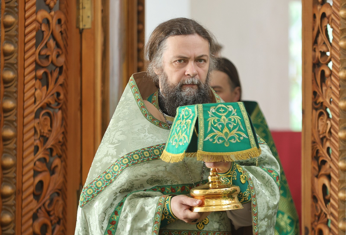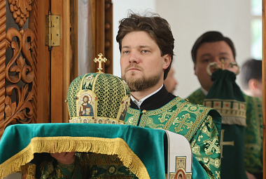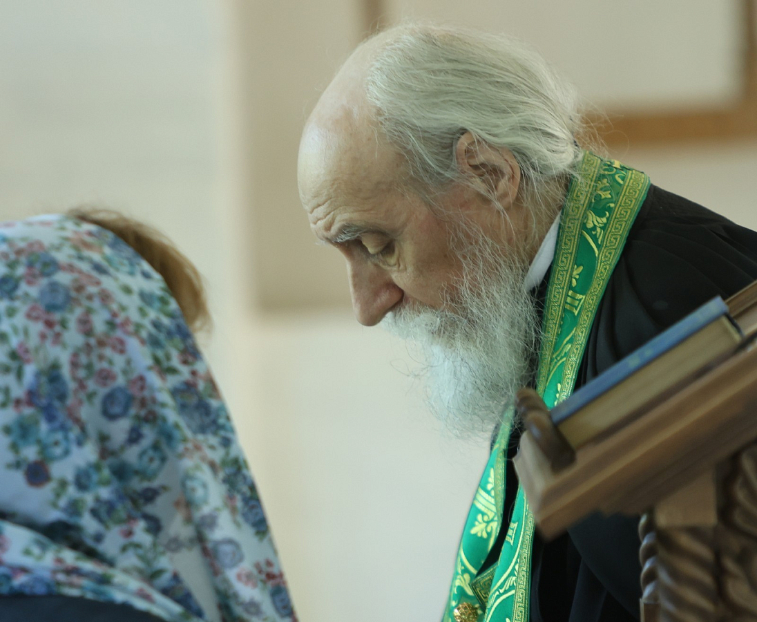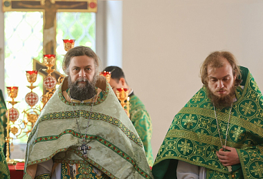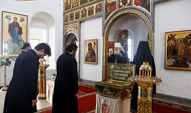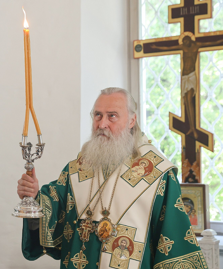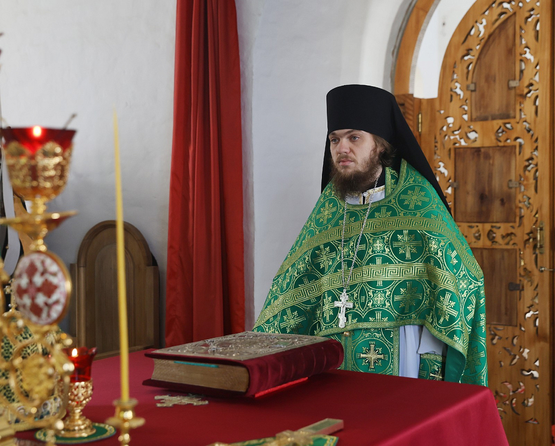Его Высокопреосвященству сослужили наместник Андреевского монастыря игумен Дионисий (Шлёнов), братия обители в священном сане.