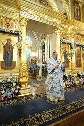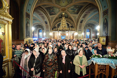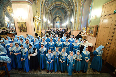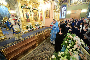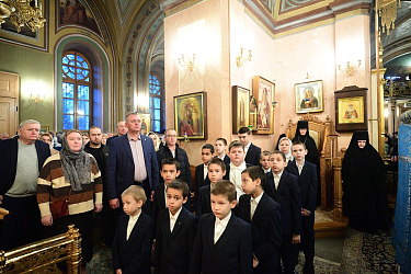 За богослужением молились настоятельница монастыря игумения Феофания (Мискина) с сестрами, воспитанницы и воспитанники монастырского детского приюта, прихожане и паломники.