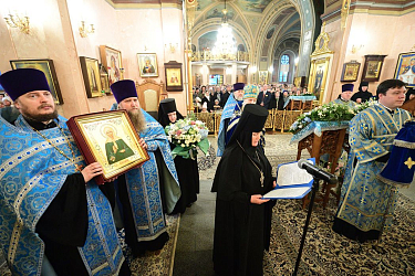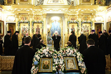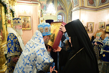Митрополит Феогност поздравил игумению Феофанию, насельниц обители и прихожан с престольным праздником.