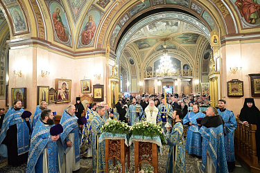 На сугубой ектении были вознесены особые прошения, митрополит Феогност прочитал молитву о Святой Руси.