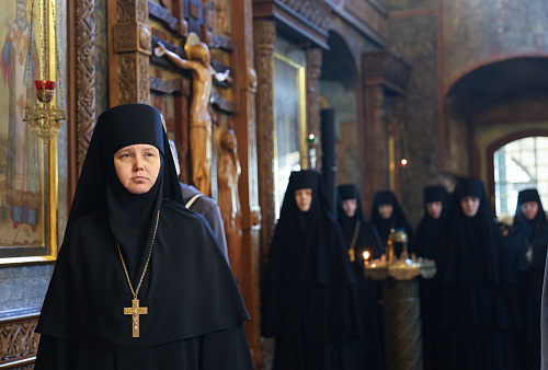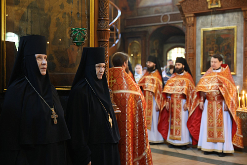 За Литургией молились игумения Иулиания (Каледа), заместитель председателя Синодального отдела по монастырям и монашеству, настоятельница Зачатьевского ставропигиального женского монастыря, и игумения Викторина (Перминова), член Коллегии отдела, настоятельница Богородице-Рождественского ставропигиального женского монастыря. В молитве участвовали игумении обителей – ставропигиальных и относящихся к Московской митрополии, также прибывшие для участия в региональном круглом столе, который состоялся в этот день в зале Сретенской духовной академии.