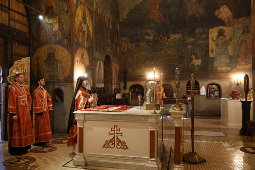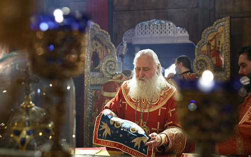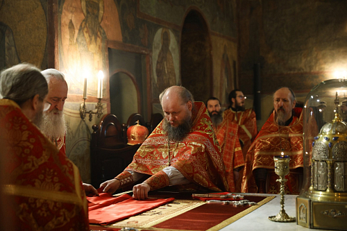 Его Высокопреосвященству сослужили епископ Балашихинский и Орехово-Зуевский Николай, главный редактор Издательства Московской Патриархии; епископ Можайский Иосиф, наместник Введенского ставропигиального мужского монастыря Оптина пустынь; игумен Иоанн (Лудищев), наместник Сретенской обители, а также наместники и игумены ставропигиальных монастырей и монастырей Московской митрополии – участники регионального круглого стола «Сущность монашеского подвига в современных условиях».