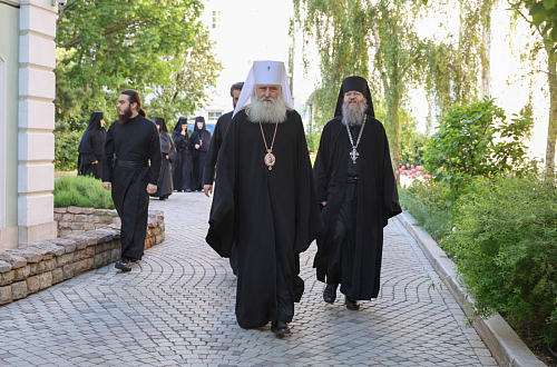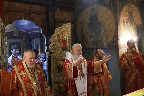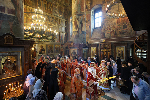 23 мая 2025 года, в пятницу 5-й седмицы по Пасхе, память апостола Симона Зилота, митрополит Каширский Феогност, председатель Синодального отдела по монастырям и монашеству, наместник Донского ставропигиального мужского монастыря возглавил служение Божественной литургии в храме Сретения Владимирской иконы Божией Матери Сретенского ставропигиального мужского монастыря.