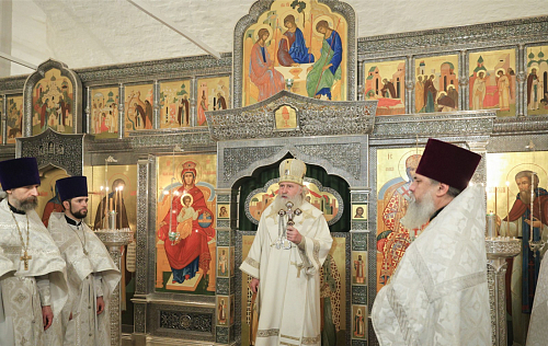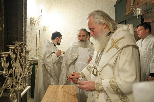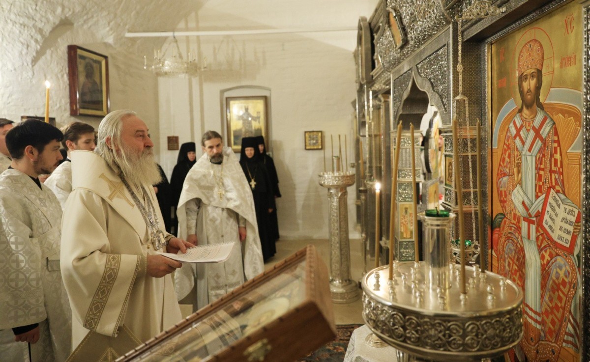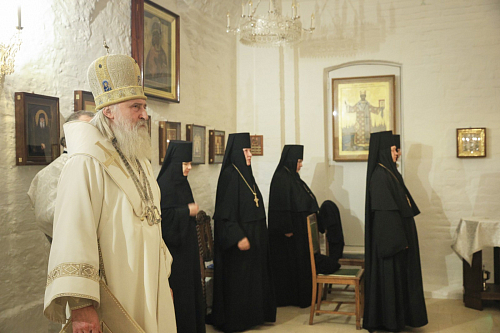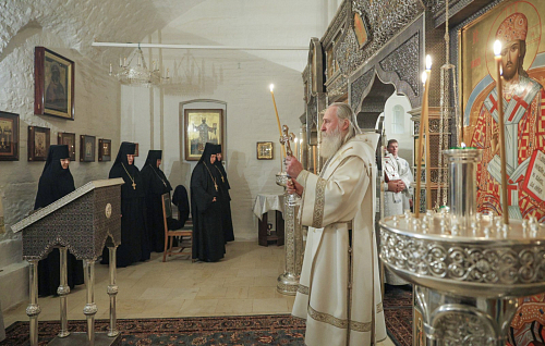 Его Высокопреосвященству сослужило духовенство обители.