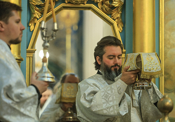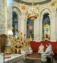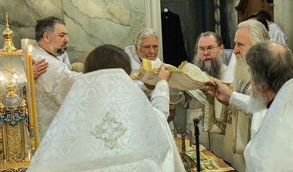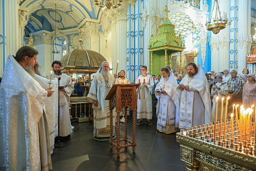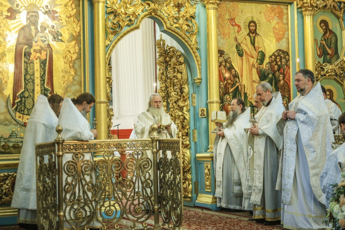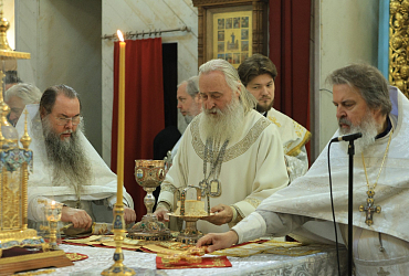 Его Высокопреосвященству сослужили наместник монастыря архимандрит Феофилакт (Безукладников) и братия обители в священном сане.